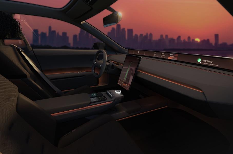 Вместо обычной «приборки» Skoda разместила под лобовым стеклом узкий дисплей Horizon Display — подобный подход можно увидеть у BMW. Центральный экран имеет портретную ориентацию, а под ним видны «шайба» для выбора режимов езды, несколько физических клавиш и отсеки для беспроводной зарядки телефонов. Управлять некоторыми функциями можно и с помощью голосового ассистента Laura, которой внедрили ИИ.