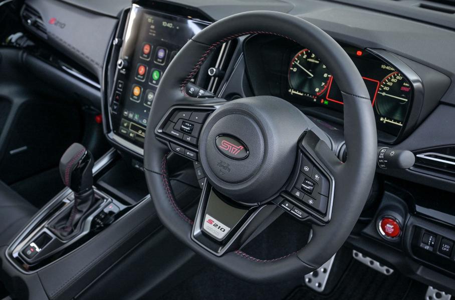 Если не вдаваться в детали, то STI S210 очень похож на STI Sport#. И тут и там есть гибкая распорка передних стоек, дополнительные регулируемые тяги, а также виброгасящий материал в поддоне «запаски» и багажнике. Диаметр колес BBS — 19 дюймов. Шины — Michelin Pilot Sport 4S. Вдобавок у S210 более жесткие втулки заднего стабилизатора, тормоза Brembo с шестипоршневыми моноблочными суппортами спереди, перекалиброванная адаптивная подвеска и селектор режимов движения. В салоне — кресла Recaro с углепластиковыми спинками; материалы отделки: кожа «наппа», замша Brin Naub и кожзам.
