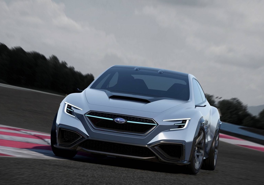 В отделке экстерьера спортседана используется углеродное волокно — из него выполнены элементы переднего и заднего бампера, крыша и расширители арок. Последние, кстати, намекают, что новый WRX может вполне оказаться кроссовером.