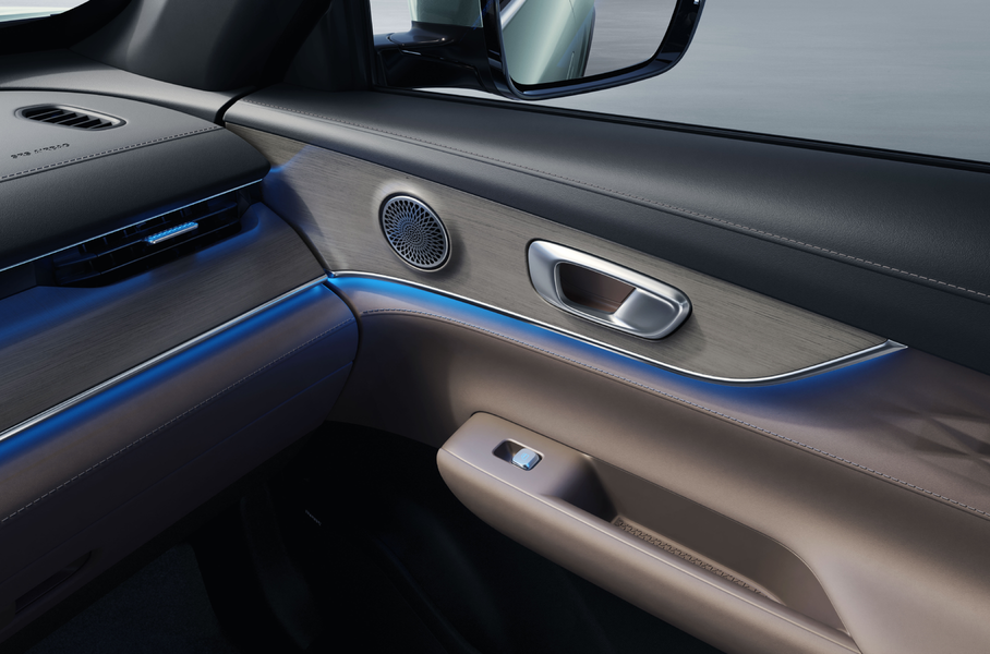 Для салона, на 80 процентов покрытого мягкими на ощупь материалами, доступно две расцветки — черная Deep space black и бежевая Coffee brown. Спереди установлены 15,6-дюймовый экран медиасистемы с разрешением 2,5К и «приборка» диагональю 10,3 люйма.