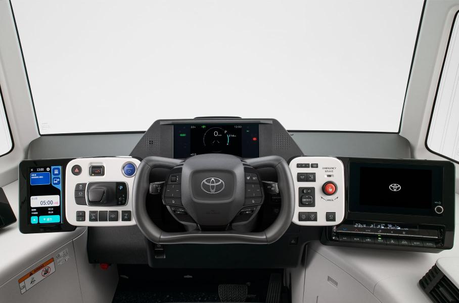 Концепт e-Palette, представленный на выставке CES в 2018 году, задумывался как полностью беспилотный, без места для водителя. Автономной была и обновленная версия, попавшая в ДТП в ходе Паралимпийских игр в 2021 году. В новом варианте Toyota добавила водительское место, расположив его по центру и оснастив рулем, механически не связанным с колесами — реализовано управление «по проводам» (steer-by-wire).