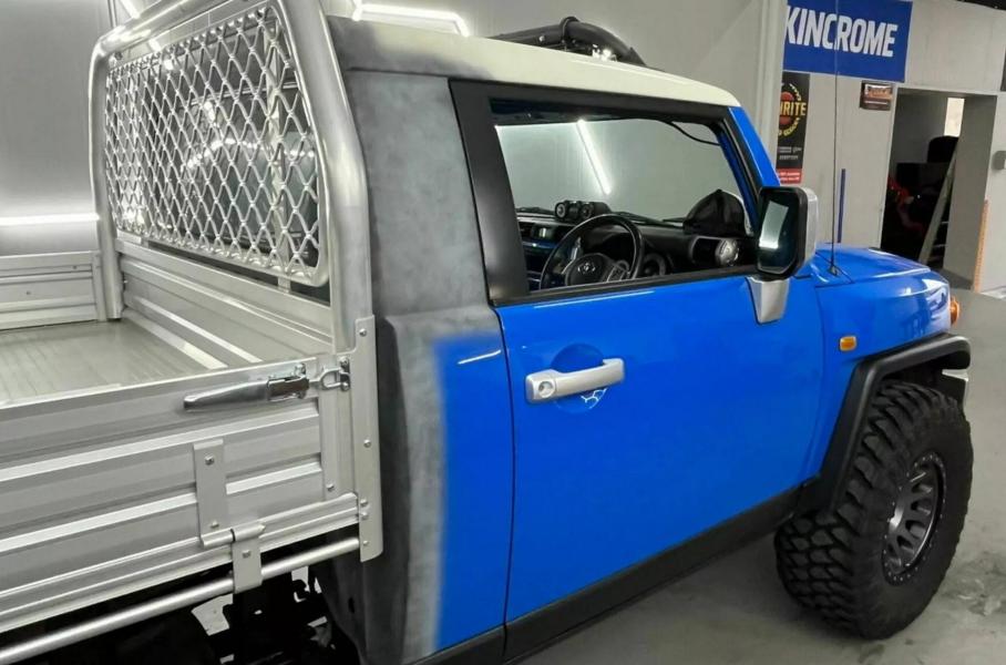 В необычном проекте задействовали заводские детали Toyota и... NissanВ Австралии Toyota предлагает заводские грузовички на базе вышеупомянутого Hilux и Land Cruiser 70, однако владелец пожелал добавить утилитарности внедорожнику FJ Cruiser. Между лонжеронами рамы добавили 30-сантиметровую вставку, за кабиной установили защитную сетку и дугу безопасности, а к носовой части кузова малой кровью приварили стенку. Саму кабину даже не стали перекрашивать!