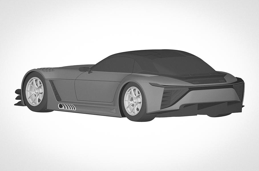 Двухдверный спорткар представляет собой чисто гоночную модель, оборудованную развитым боковым обвесом, широким передним бампером, а также массивным диффузором на корме и воздухозаборниками в передних крыльях. Необычным решением может стать выхлопная система, выведенная за передними колесами.