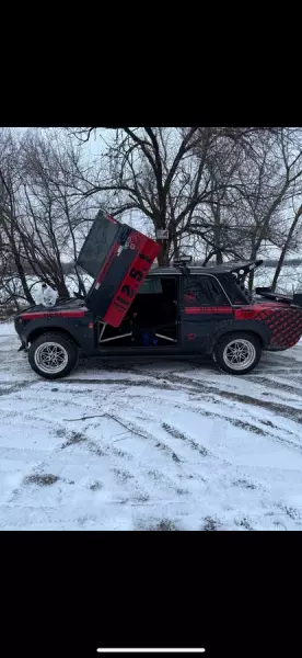 Судя по фотографиям, от классического ВАЗ-2101 1980 года выпуска остался только кузов. Продавец пишет, что машина строилась для зимнего или влажного дрифта. У автомобиля заварены задние двери, а в передних применены подъемные механизмы, как у моделей Lamborghini.