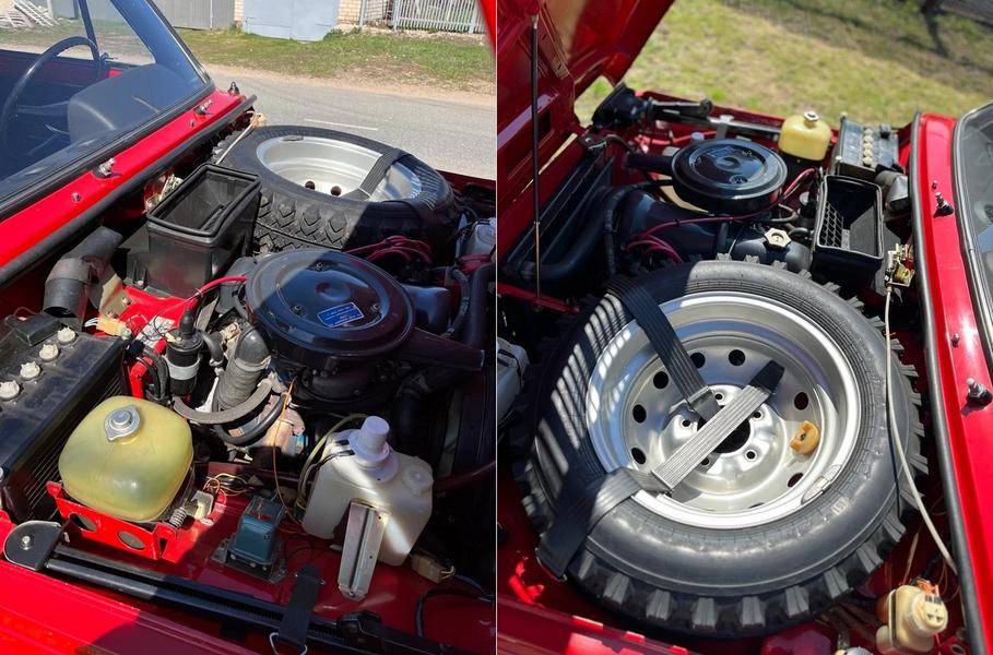Из необычных артефактов — югославская авторемонтная эмаль, сервисная книжка с автографом создателя «Нивы», нетронутые ручной стартер и запаска. Техника абсолютно стандартная: под капотом атмосферный карбюраторный 1,6-литровый двигатель, тяга передается через механическую 4-ступенчатую коробку передач. Судя по пломбам, пассажирская дверь не открывалась вовсе.