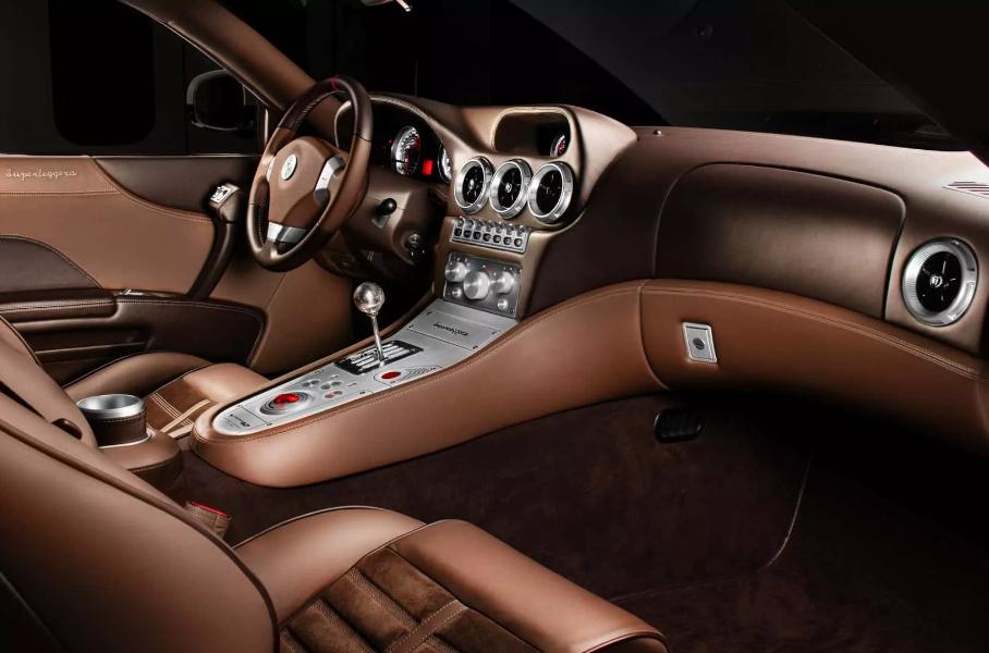 Салон же переделан: в отделке используется коричневая кожа и алюминий, изменился дизайн тумблеров и переключателей, появились декоративные вставки и новые клавиши. При этом в целом дизайн интерьера выдержан в духе Ferrari.