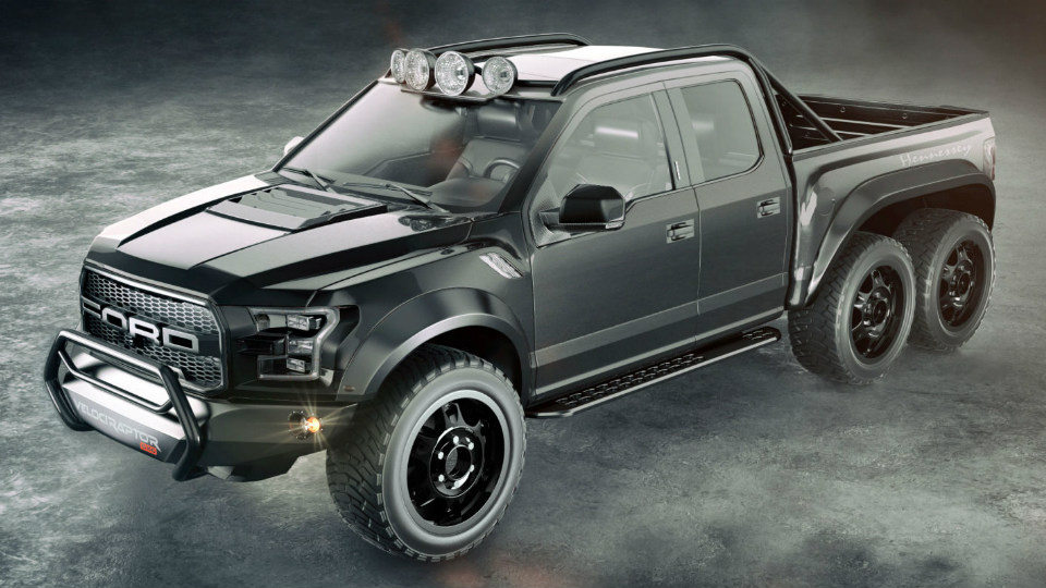 Американцы выпустят 600-сильный трехосный вездеход VelociRaptor 6×6Американское ателье Hennessey Performance анонсировало разработку шестиколесного внедорожника VelociRaptor 6×6. Его построят на базе «заряженного» пикапа Ford F-150 Raptor SuperCrew нового поколения.