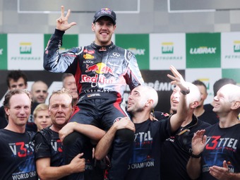 "Столкновение с Сенной повредило днище и выхлопную систему с левой стороны автомобиля Феттеля, – уточнил руководитель команды Red Bull Кристиан Хорнер. – Чем сильнее подсыхал асфальт на «Интерлагосе», тем очевидней становились проблемы с балансом болида. Но затем дождь усилился». В результате Себастьян Феттель удержался на шестом месте и выиграл третий чемпионский титул в Формуле-1.