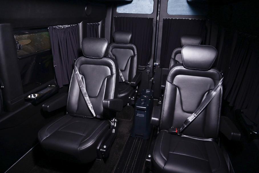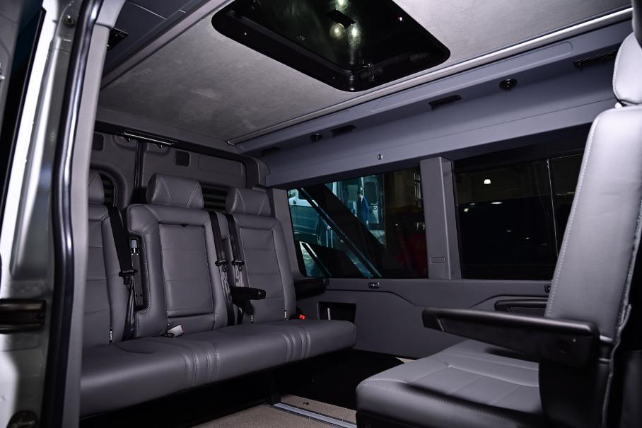 В салоне электрического шаттла есть кожаные кресла с регулировками, беспроводные зарядки, подстаканники, а также разъемы USB-C. Заодно предусмотрены багажные полки для ручной клади, стойка для зонтов и отдельные секции для габаритного багажа.