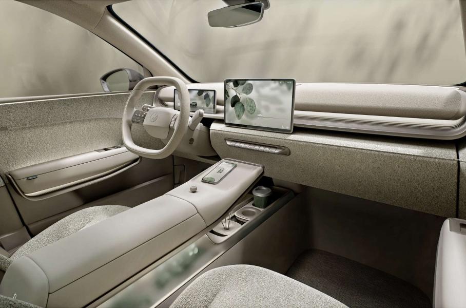 Салон тоже не лишен отсылок, но уже к ID.2all, а его тканевая обивка в бежевых тонах вдохновлена «дорогой мебелью». Спереди установлены новый руль, приборная панель диагональю 11 дюймов и 13-дюймовый экран мультимедийной системы. От физических кнопок на этот раз решили не отказываться. Все сиденья можно сложить в ровный пол, а их спинки обиты материалом, который Volkswagen сравнивает с ковриком для йоги.