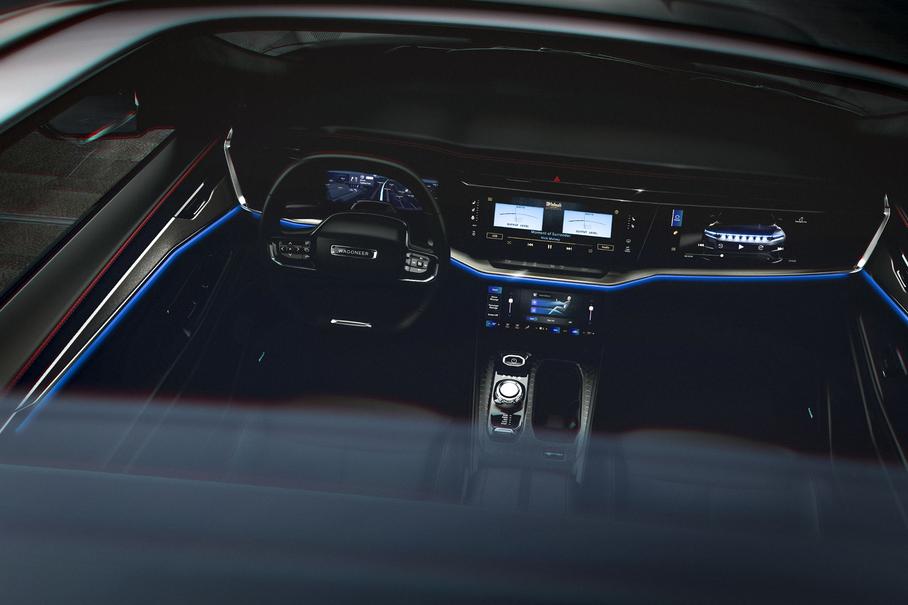 Jeep опубликовал официальные фотографии интерьера Wagoneer SПоявилась и новая информация об оснащении. Электрический Wagoneer S получит мультируль с физическими кнопками, панорамную крышу с люком, контурную подсветку салона и аудиосистему McIntosh с 19 динамиками. Подтверждена и отдача двухмоторной силовой установки — она превысит 600 лошадиных сил. Информации о емкости батареи по-прежнему нет, зато известно, что на одном ее заряде Wagoneer S будет проезжать до 640 километров.