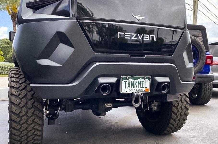 Другими особенностями Rezvani Tank являются силовые бамперы, лебёдка с управлением из салона, фаркоп, а также усиленные подножки с сервоприводом и дополнительная система освещения. Салон внедорожника выполнен из черной кожи и дополнен мультимедийной системой с 11-дюймовым экраном. В движение автомобиль приводит 6,2-литровый двигатель V8 Hellcat от Dodge Challenger SRT Demon, отдачу которого специалисты довели до 1100 лошадиных сил.