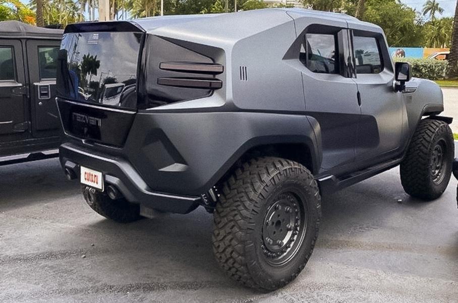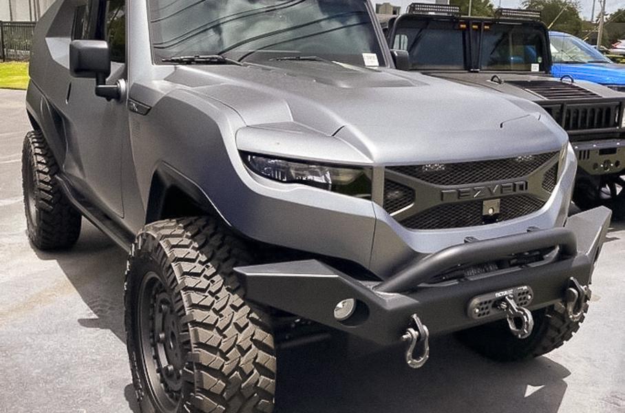 Аналогичная машина есть в автопарке американского шоумена XzibitRezvani Tank построен на базе серийного Jeep Wrangler 2019 года. Внедорожник оснащен броней класса B7, которая способна выдержать выстрел из СВД патроном калибра 7,62x51 НАТО со стальным сердечником с расстояния десяти метров. Кузов машины выполнен из кевларовых панелей, которые дополнены пуленепробиваемыми стёклами, а также защитными пластинами на днище и изолированным бензобаком. Кроме того, модель способна противостоять химическим атакам, а также обладает системой противодействия электронному сканированию.