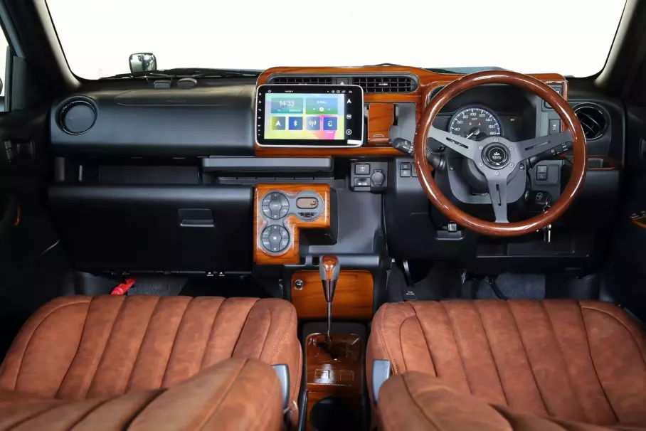 Тюнеры полностью переработали переднюю часть Toyota Probox: появились круглые светодиодные фары, решетка радиатора с сотами, массивный бампер из неокрашенного пластика, а также расширенные передние крылья и новый капот. Дизайн точно копирует стиль модели Land Cruiser 70.