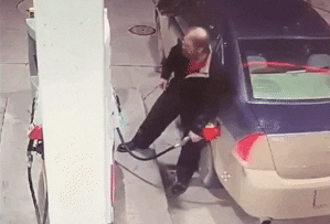 Камера наблюдения запечатлела странное поведение канадского автомобилиста на АЗС