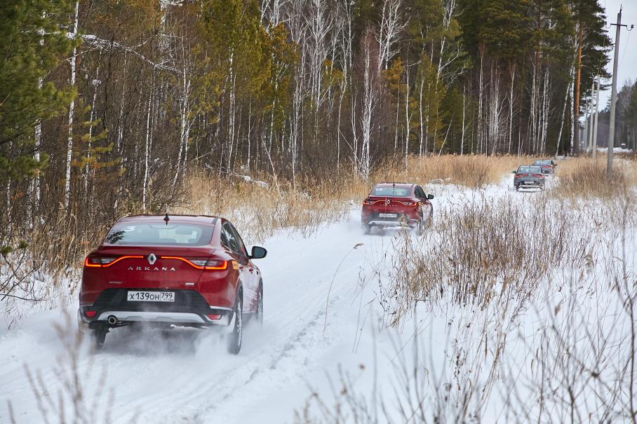 А вообще, имеет ли смысл здесь говорить о талантах? Пожалуй, даже Lada Granta сумеет бодро прохватить по снежному проселку, поскакать по белым кочкам под высоковольткой и красиво покрутить «блинчики» на льду озера. Не то что полноприводная Arkana с довольно борзым турбомоторчиком под капотом.