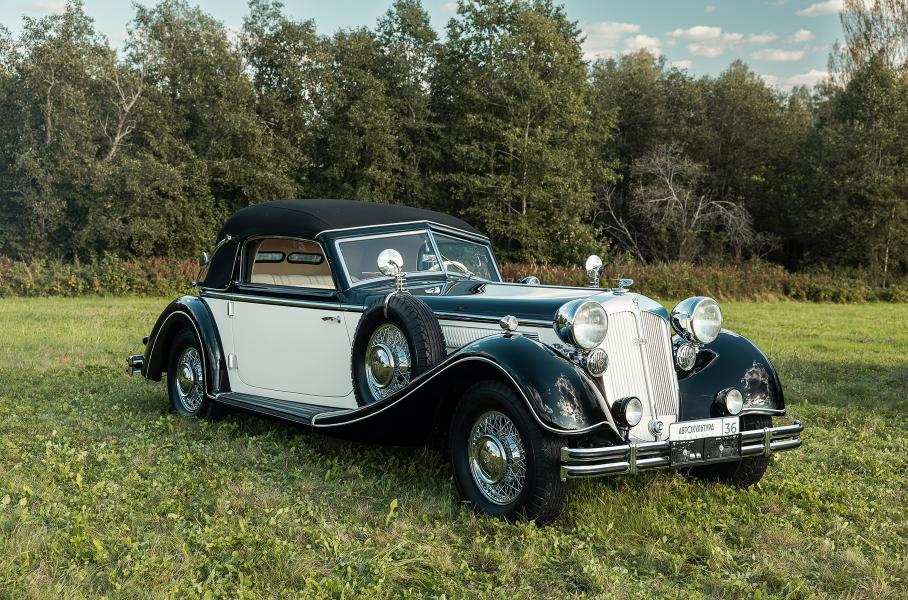 Начнем сразу с победителей. В категории Европейские довоенные (до 1945 г.) победил превосходный Horch 853. Это один из самых роскошных автомобилей довоенной эпохи, воплотивший лучшие достижения немецкого автопрома. На таких кабриолетах ездили первые лица Германии и видные граждане СССР, включая Алексея Щусева и Александра Покрышкина. И пусть на радиаторной решетке кабриолета красуются четыре кольца, Horch не вполне можно считать предтечей Audi. Это была самая настоящая люксовая марка.