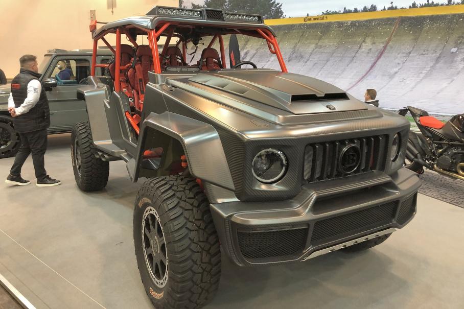 Какой же Эссен без Брабуса? А где Brabus, там и безумно доработанные «Гелендевагены». Правда, мы не уверены, правомерно ли называть так Brabus 900 Crawler. Ведь от «Гелена» у него только внешность, силовой агрегат и часть деталей шасси, причём турбомотор V8 4.0 форсирован до 900 лошадиных сил.