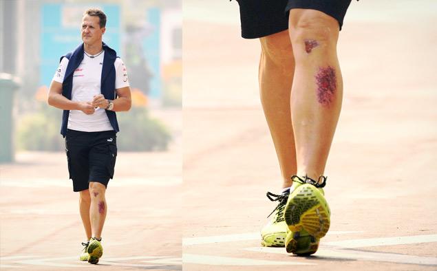 Михаэлю Шумахеру снова не повезло -- пробитое на старте колесо, героическая погоня за хвостом пелотона, сход