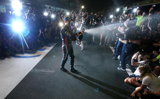 Как бы вы ни относились к Феттелю, это было очень красиво. Себ проигнорировал привычную команду инженера припарковаться в закрытом парке и, миновав въезд на пит-лейн, после круга почета вновь выехал на стартовую прямую, чтобы прокрутить несколько "пончиков". Он вылез из машины, встал перед ней на колени и поклонился, достав шлемом до земли. Эмоционально. Даже трогательно.