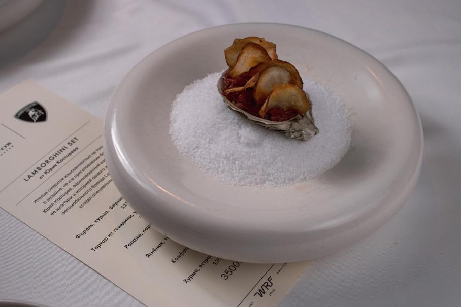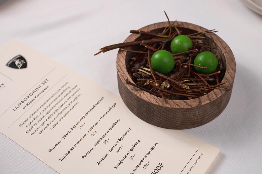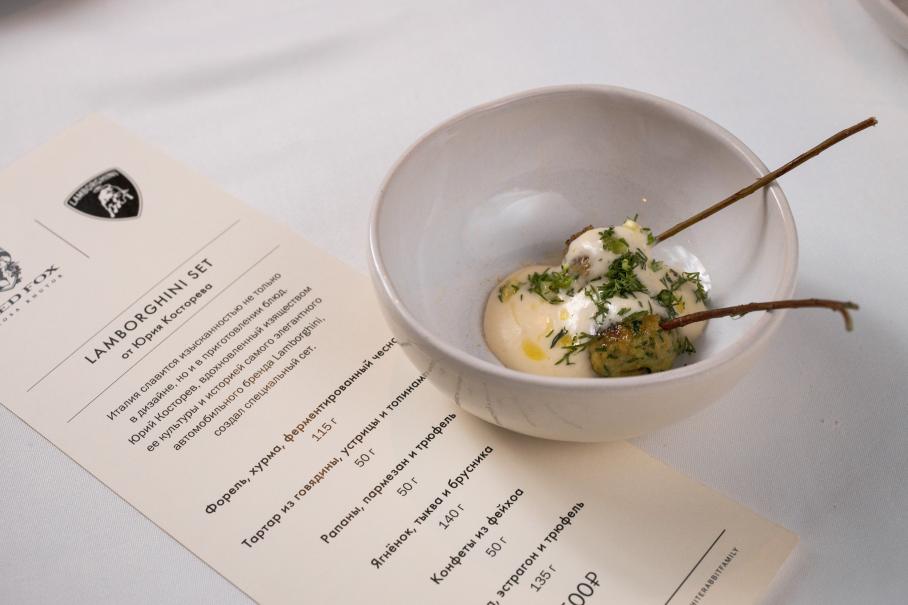Мои коллеги из глянцевых изданий намного лучше ориентируются в теме и таки заводят с Юрием беседу о высокой кухне. Я бывал в мишленовских ресторанах, но не могу поддержать этот разговор. Более того, если бы я присоединился не с начала, подумал бы, что речь шла о театре. Ведь собеседники говорили не о еде, а о впечатлениях, переживаниях, смыслах… Ну знаете, как если бы я в разговоре с петролхэдами завел свою старую пластинку, что W12 никогда не будет звучать как V8, то наверно заставил бы страдать случайно попавшего в компанию архитектора, спортсмена или шеф-повара. С той разницей, что я-то как раз не страдал, а лепил хинкали из свежей клубники и рисового теста. С этим справится и любитель круггетсов с чебупелями. А из чего приготовил десерт сам Юрий? Голубика, тархун и жженая ряженка. Хм…