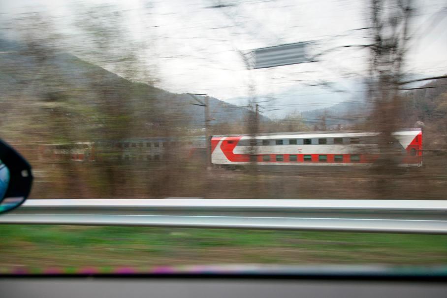 Местные экипажи ДПС выезжают не на патрулирование, а как будто на охоту, а тут впереди целый Lamborghini на московских номерах! Кроме того, дорога петляет, и мы будто не едем, а что-то вышиваем вокруг ровной струны железнодорожного полотна. Подныриваем в тоннели и оказываемся то справа, то слева. Максимум, что нам удалось — не потерять поезд из виду, пока наши дороги не разошлись. Уверен, на равнине и на шоссе мы бы отыгрались. Тем более что конечный пункт — аж Московский вокзал Санкт-Петербурга.