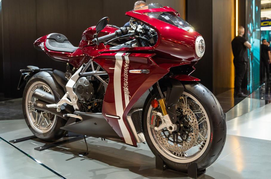 Пожалуй, главная звезда — это новейший Ducati Hypermotard 698 Mono: ему даже присвоили звание «красивейшего мотоцикла выставки». Как нетрудно догадаться по названию и внешнему виду, это мотард: специфическая разновидность спортивного мотоцикла, объединяющая черты внедорожных эндуро и асфальтовых байков. Он получил новейший одноцилиндровый двигатель Superquadro Mono — по сути, это половинка L-образной «двойки» Ducati Superquadro, которая ставится на спортбайки Panigale. От неё мотор унаследовал форму камеру сгорания, поршень диаметром 116 мм и фирменный десмодромный механизм газораспределения, позволяющий достигать рекордных для «одностволки» 10250 оборотов в минуту. Мощность 659-кубового двигателя составляет 77,5 лошадиных сил при 9750 об/мин — что делает его самым мощным одноцилиндровым двигателем на рынке.