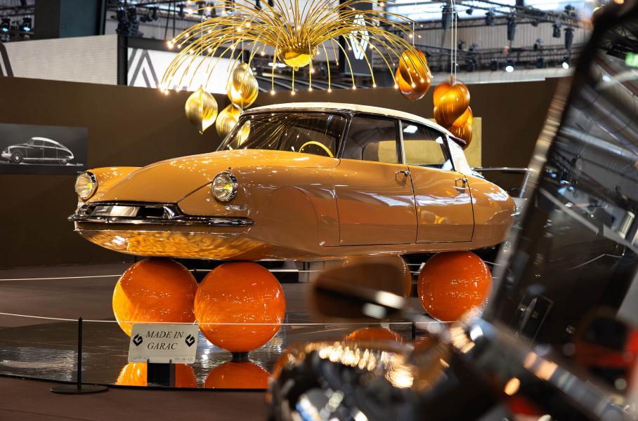 В ходе салона Rétromobile прошли сразу несколько тематических выставок. Одна из них была посвящена 70-летию легендарного Citroën DS: его дебют состоялся в октябре 1955 года на Парижском автосалоне. Автомобильная скульптура в виде Ситроена на воздушных шарах метафорически демонстрировала главную особенность машины — гидропневматическую подвеску. Шоу-кар в 1959 году придумал тогдашний директор Ситроена по рекламе Клод Пюэш, но это — воссозданная уже в наше время копия. Выглядит очень остроумно: рисунок с «Ситроен-баллоном» даже поместили на афишу автосалона.