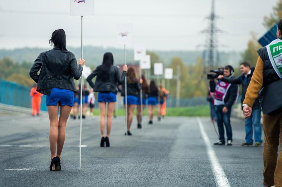 В Смоленске в минувшие выходные было прохладно -- грид-герлз пришлось накинуть куртки.