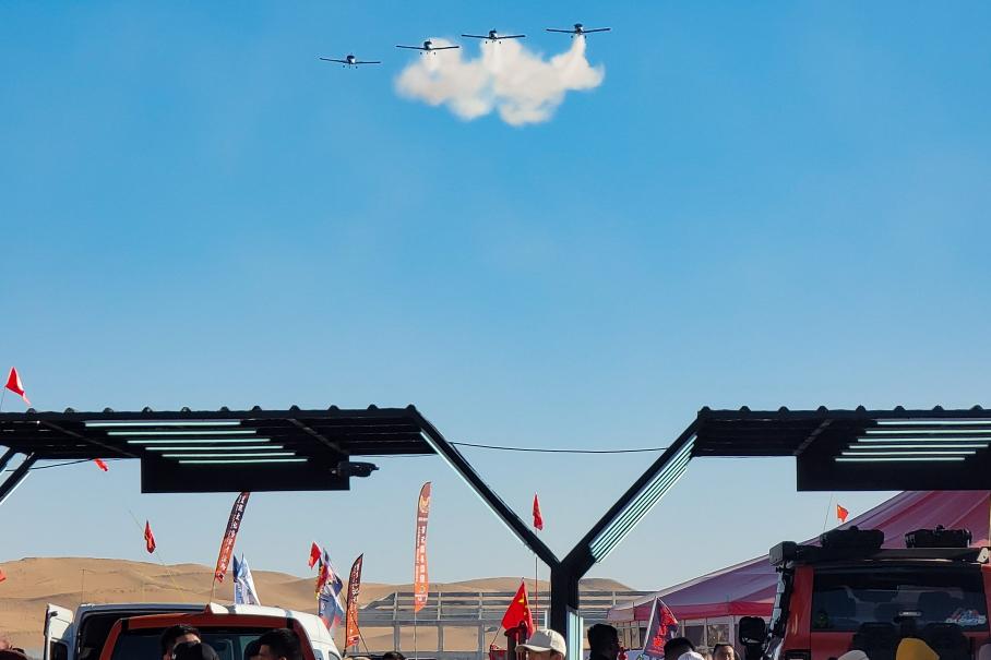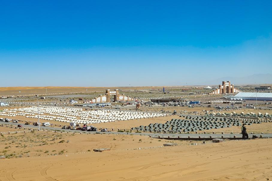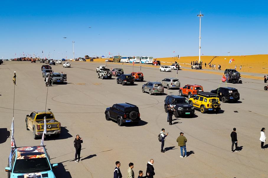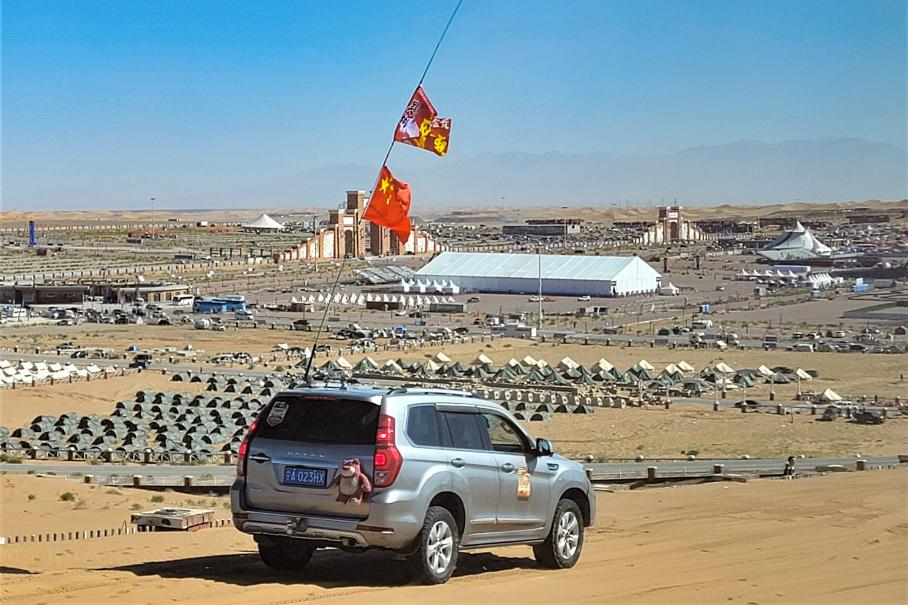 У китайцев в начале октября целая неделя каникул, посвящённых национальному празднику. Поэтому джиперы стекаются в автономный район Внутренняя Монголия со всей огромной страны — для некоторых особо отдалённых регионов это несколько дней пути. Но масштабы того, что открывается взору в пустыне Alxa, поражают. На подъезде к площадке проложенное в пустыне шоссе упирается в эпическую стелу, прямо как в Гудвуде. Сложно в это поверить, но дальше эта дорога никуда не ведёт — огромную асфальтированную то ли взлётку, то ли парковку (и ведущее к ней шоссе) сделали в пустыне специально для фестиваля.