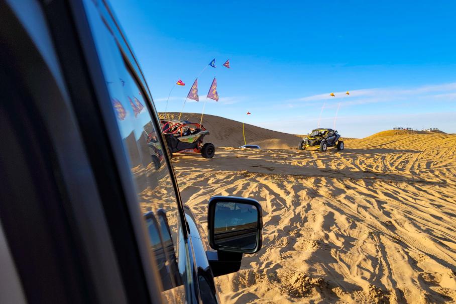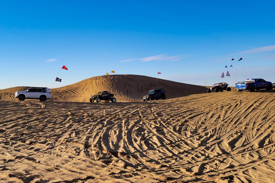 Если в галерее выше показано бесцельное бесилово в гигантской песочнице для всех желающих, то другое развлечение — T3 Challenge — подчинено спортивному регламенту. T3 тут означает не класс внедорожных прототипов, как можно было бы подумать, а Team 3 — команды из трёх участников. Экипажи внутри одной команды стартуют бок о бок одновременно (на автомобилях без каркасов!) и мчат на время по песчаному автодрому. Результат команды фиксируется по последнему финишировавшему.