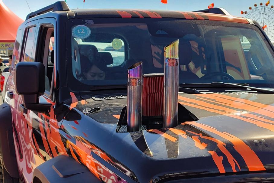Китайские джиперы очень любят вешать на свои машины разных кукол. В магазинах тюнинга даже продаются специальные площадки-крепления для этих маскотов. Ещё один обязательный атрибут — флагшток высотой до 5 метров. Наконец, у торговцев можно купить санки для спуска по песчаным склонам