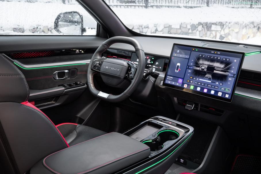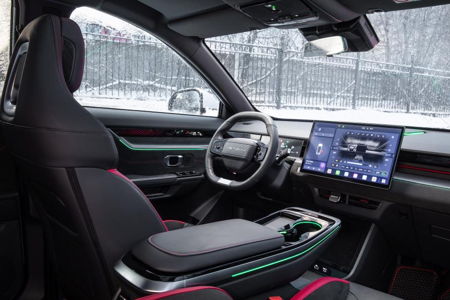 «Девяностый» — самый лаконичный автомобиль в линейке, как по дизайну, так и по управлению. Там нет футуризма, каких-то радикальных дизайнерских решений, он в целом более понятный, более привычный, у него более классический дизайн как экстерьера, так и интерьера. Эргономика на уровне — даже с моим скромным ростом в 160 сантиметров, который был проблемой в том же X70 Plus даже с максимальном поднятым креслом, где очень мешала боковая стойка, в старшей модели таких проблем не было. Посадка удобная, кресло регулируется под любой рост, к обзорности тоже не придраться.