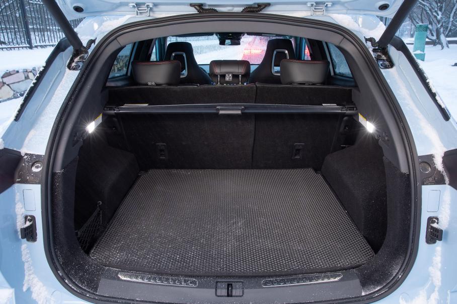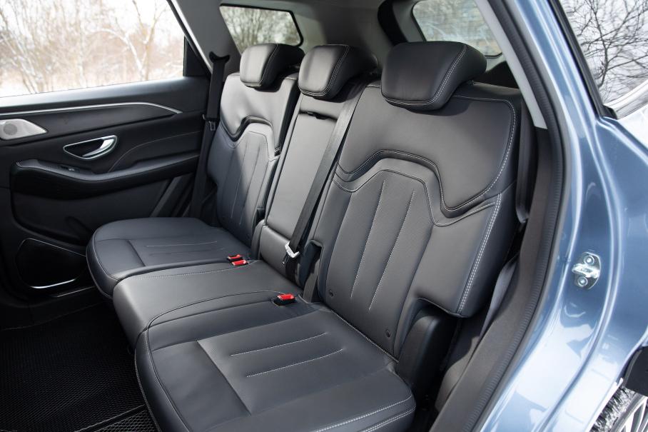 Последним стал X90 Plus, самый вместительный и самый крупный кроссовер с претензией на практически внедорожник. В длину он чуть-чуть не дотягивает до 4,9 метров и в салоне это ощущается особенно — четыре взрослых человека могут разместиться там с комфортом, мы проехали таким составом последний перегон почти в 200 километров до Санкт-Петербурга, и места было достаточно и для ног, и для того, чтобы все, кроме водителя, сидели с ноутбуками и не толкали друг друга локтями. Багажник легко вместил весь наш багаж и огромные пуховики, мест для хранения мелочей предостаточно.