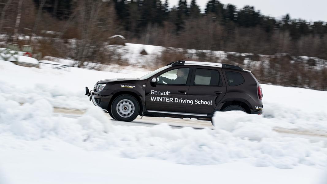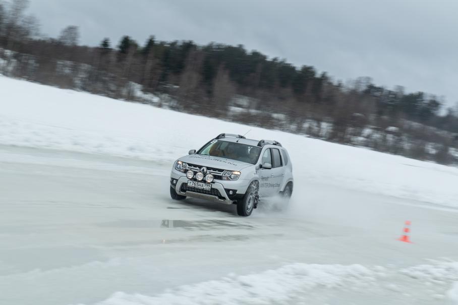 Новичку все это будет полезно и интересно, мне же было скучно, пока нас не посадили в Duster, обутый в тренировочные шипы. Я с удовольствием намотал почти тридцать кругов по полуторакилометровой трассе, показал лучшее время среди коллег и в очередной раз убедился, что чем проще машина, тем легче и приятнее на ней ехать.