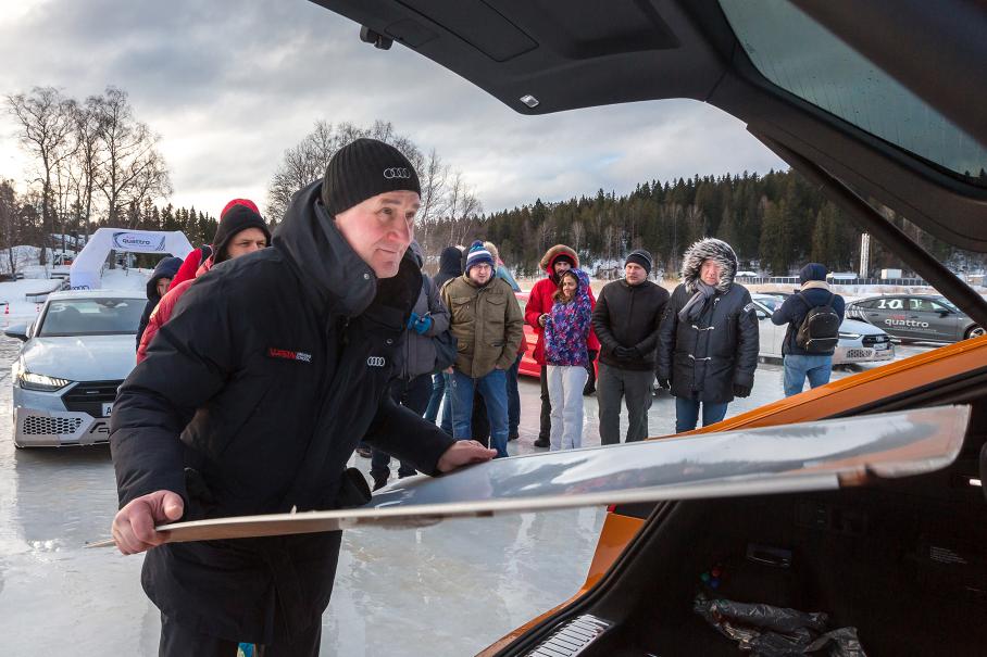 В легендарной карельской школе Audi под руководством известного раллийного гонщика Евгения Васина обучают иначе. Тут делается акцент на использование базовых приемов из автоспорта, и это здорово. Начинается все, как обычно, со змейки, но затем Васин сотоварищи переходят на хитрые фигуры вроде гантелей, эллипсов и различных связок поворотов.