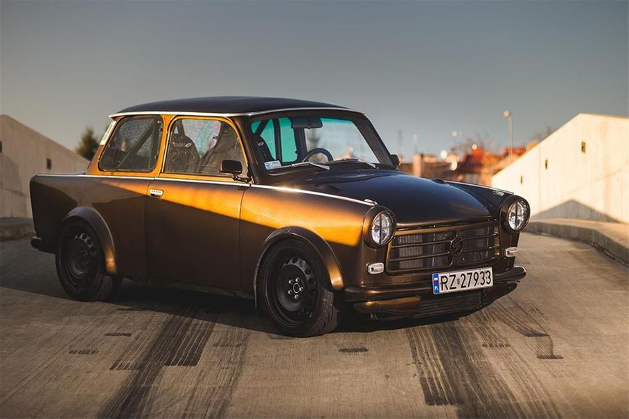 Примерно так же обстоят дела с почти что не гниющими «Трабантами» (спасибо дуропластовому кузову) – тюнинг есть, но глазу зацепиться практически не за что. Редкое исключение – вот этот 601-ый «Трабби» из Польши. Его владелец тюнингует свое детище достаточно давно: сначала был установлен двигатель от Volkswagen Polo, после – от Golf GTi. Последний вариант – двигатель и трансмиссия от Audi TT 1.8T первого поколения. Теперь Trabant может похвастать табуном в 265 сил, разгоном до сотни в 4,5 секунды, мощными тормозами… А также стильной внешностью, которую владелец машины тоже не оставил без внимания.