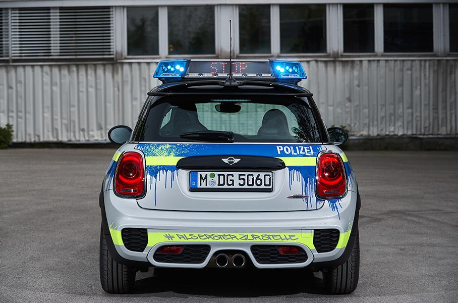 Полицейская ливрея нарочно оформлена с подтеками краски, словно это произведение стрит-артистов – все-таки Mini позиционируется как молодежный бренд.