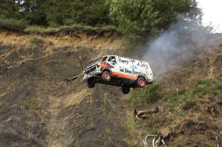 А вот такую штуковину мы видим впервые: примерно то же самое, но крупнее и с полноценным закрытым кузовом автомобильного типа, колёсами спереди и парой гусениц сзади! Пришлось гуглить: оказывается, такие снегоходы под названием Track Truck (дословно «гусеничный грузовик») выпускала в 80-е годы американская фирма All-Season Vehicles из Миннесоты. Сама фирма здравствует и поныне, выпуская лёгкую гусеничную технику — но вот снегоходов уже не делает.