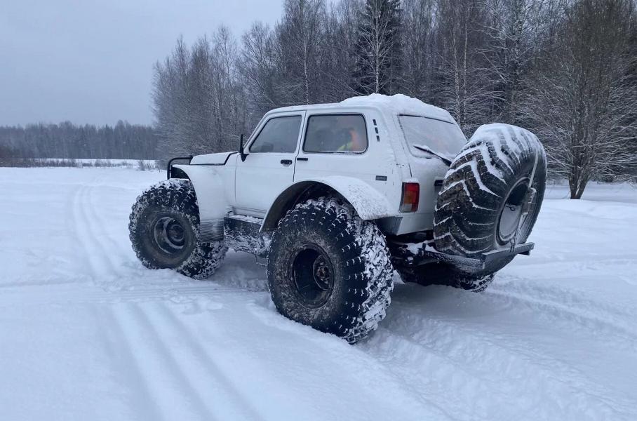 Если снег есть, а гор нет — то предпочтительнее выглядит колёсный вездеход. А точнее, так называемый снегоболотоход на пневматиках сверхнизкого давления. Такие шины накачивают всего до 0,1–0,6 атмосферы, и они оказывают столь малое удельное давление на грунт, что колёса не проваливаются в глубоком снегу и на болоте. Можно даже переехать человека, не нанеся ему травм!