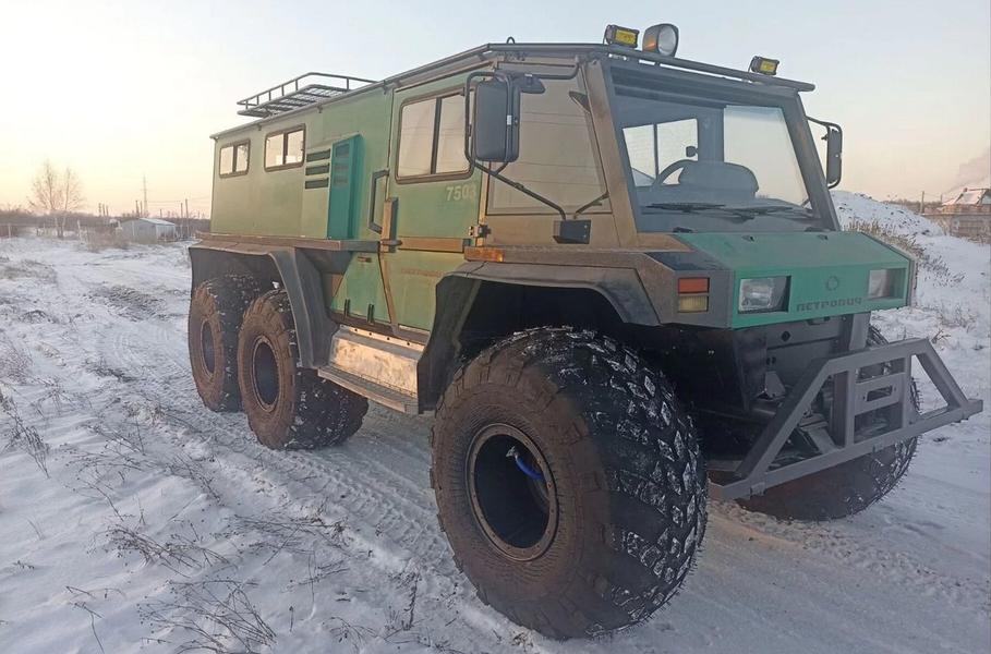Такие машины гораздо легче и экономичнее гусеничных — правда, цепляться за крутой склон им практически нечем, так что они подходят лишь для равнин. В объявлениях мы нашли кучу техники такого типа: от небольшого снегоболотохода Бронто-1922 «Марш» на основе Нивы и чуть более крупного «Трэкола» на шасси УАЗа до здоровенных трёхосных машин марок «Трэкол» и «Петрович». Правда, большинство предложений находятся в отдалённых сибирских регионах — например, в Ханты-Мансийском или Ямало-Ненецком округе.