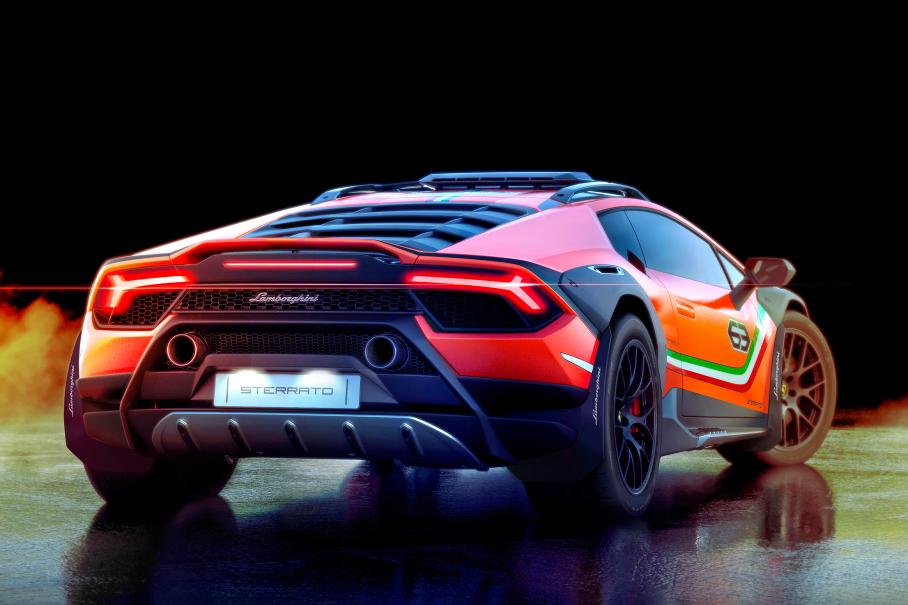 Концепт приводится 640-сильным атмосферным двигателем V10 объемом 5,2 литра. Клиренс увеличен на 47 мм. Угол въезда и съезда увеличены на 1% и 6,5%, но эти значения даже теоретически не имеют смысла. Sterrato просто не будут применять там, где нужна хорошая внедорожная геометрия.