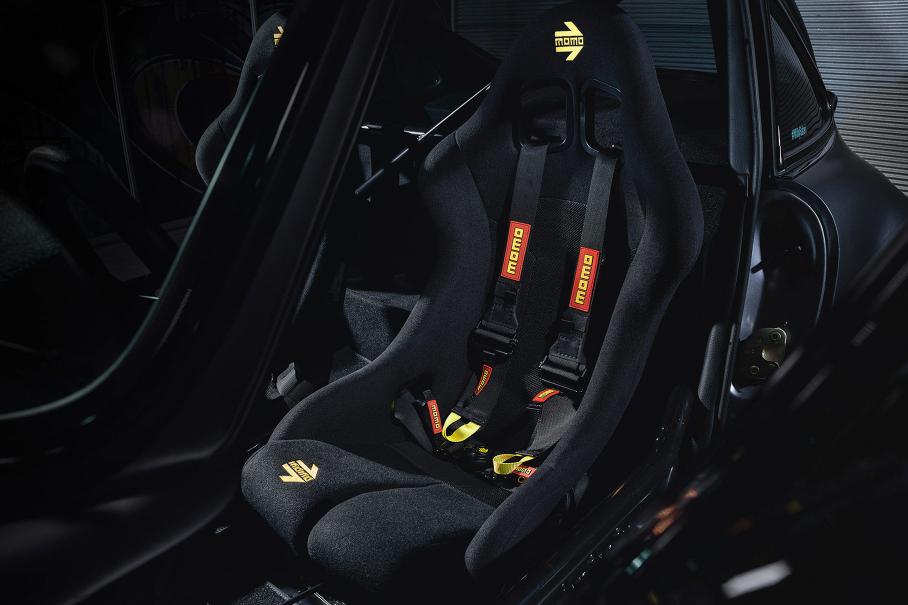 Салон с «ковшами» Recaro, цифровым приборным щитком MoTeC, каркасом безопасности и петлями вместо нормальных дверных ручек производит спартанское впечатление, но он не так прост, как кажется. Есть и динамики Focal, и усилитель JL Audio.