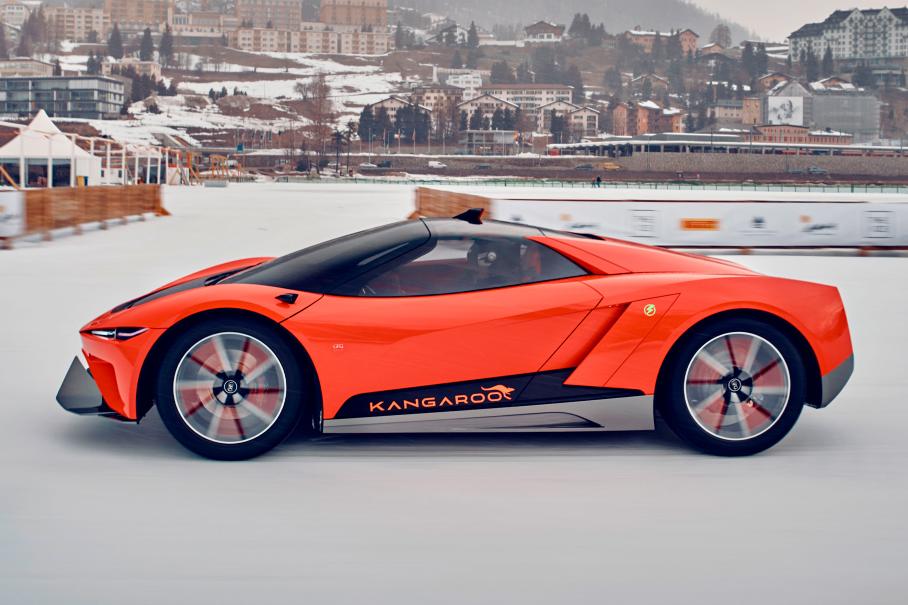 В основу легла пространственная рама. Колеса передней и задней оси вращают два электромотора совокупной мощностью 483 л.с. «Кенгуру» достигает 100 км/ч за 3,8 секунды и развивает до 250 км/ч. Радиус действия — 450 километров.
