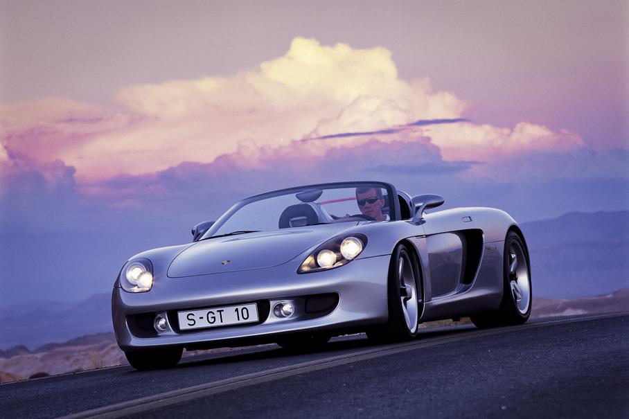 Вдохновленная Ле-Маном концепт-версия Carrera GT построена вокруг 5,5-литрового V10 от мертворожденного прототипа и имеет широкий спектр заимствований из мира спорта. В их числе углепластиковый монокок, подвеска типа push-rod и крепление колес центральной гайкой. Плюс кузов в лучших традициях дизайна Porsche. Зрители от такого буквально сошли с ума, и компания дала дорожной мелкосерийной модификации зеленый свет.
