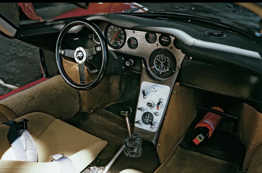 Вот она, красавица Alfa Romeo 33 Stradale! Суть адаптированная для дорог гоночная Tipo 33. Таких построили всего 18 экземпляров. Двухлитровый двигатель V8 (230 л.с.) с плоским коленвалом способен раскручиваться до 10 000 об/мин. Коробка передач шестиступенчатая механическая. Судя по размерам (длина — 3970 мм, ширина — 1710 мм) водителю приходится буквально вщелкиваться в суперкар и ощущать истинную легкость, благо он весит 700 кг и летает как пуля. Сотня — менее чем за шесть секунд, максимальная скорость — 260 км/ч.