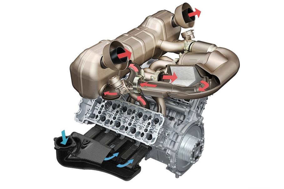 На второй строчке рейтинга «крутильности» почетный член клуба бензоэлектрических гиперкаров 2010-х годов и плод истинного инженерного гения. Важнейший элемент композиции — V8, который уходит корнями в 3,4-литровую «восьмерку» прототипа RS Spyder LMP2 (Le Mans Prototype 2). Диаметр цилиндра не изменился (95 мм), но ход поршня нарастили до 81 мм. Соответственно, рабочий объем достиг 4,6 литров.