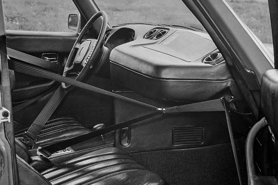 С этой же целью вся передняя маска покрыта упругим материалом, а фары (разумеется, с омывателями и очистителями) утоплены внутрь корпусов. Принципиальных отличий по набору систем безопасности, в сущности, не было — разве что у ремней появились преднатяжители. Важнее другое: в Штутгарте перестали ориентироваться на изначальные требования ESV и начали всерьез думать о серийном производстве. Поэтому максимально допустимую скорость удара понизили с 80 до более реалистичных 65 км/ч — а прибавка в массе и габаритах составила почти приемлемые 287 кг и 280 мм.