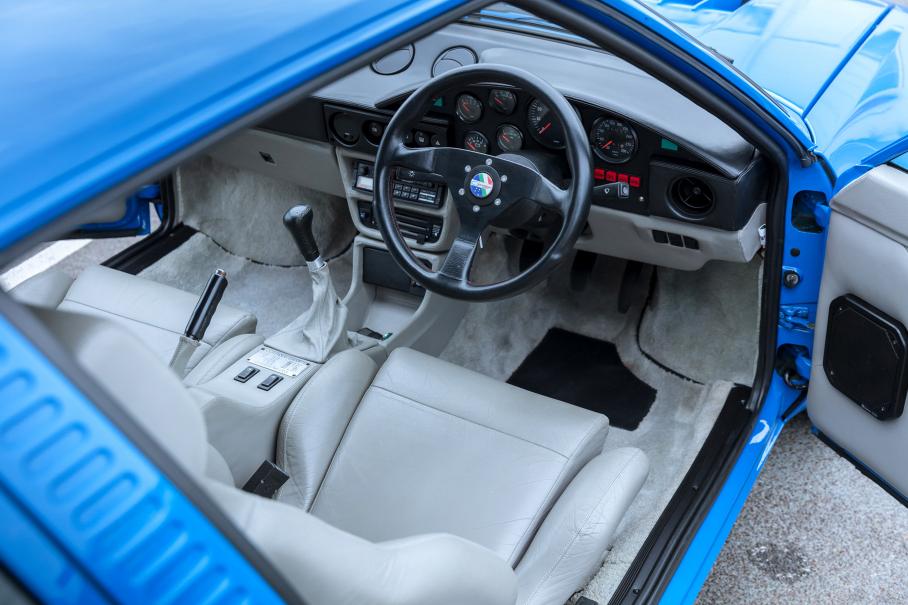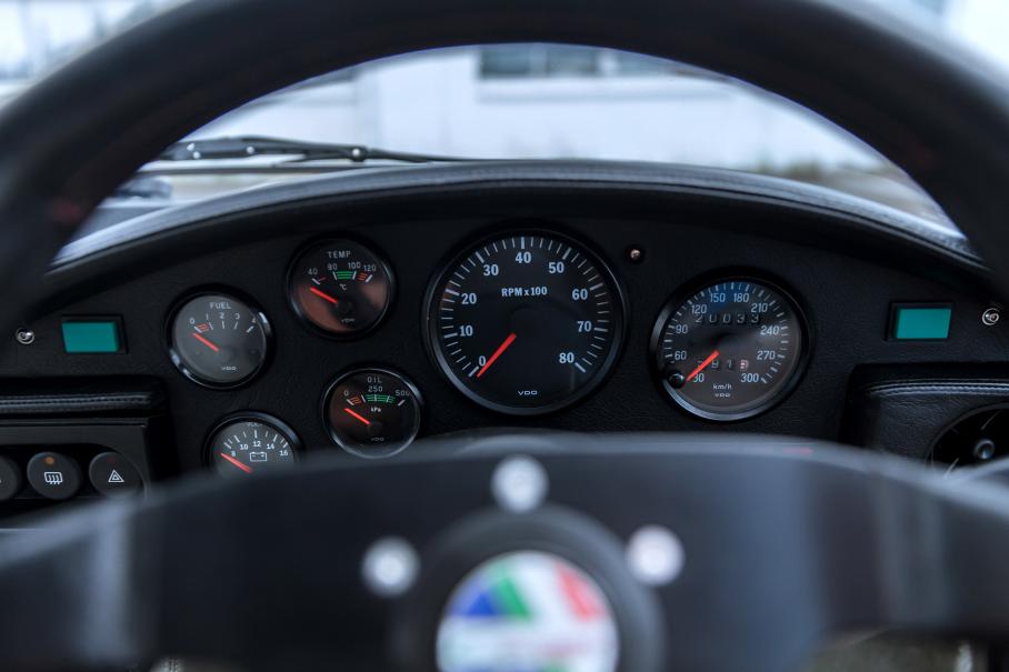 Необычная Alfa Romeo стала отрадой для пуристов. Пятиступенчатая «механика», стеклопластиковый кузов, гидравлическая подвеска Koni — что ещё нужно для счастья? Кстати, благодаря последней можно было изменять дорожный просвет в пределах пяти сантиметров, а доводкой ходовой части занимался раллийный инженер Fiat Джорджио Пьянта. И если глаза уставали созерцать красоту кузова (или несуразность, это уже дело вкуса), то салон не блистал яркими решениями. Панель с семью приборами в ряд, аналоговые часы, нерегулируемый руль и рычаг «механики» — вот и всё, чем располагает пилот.