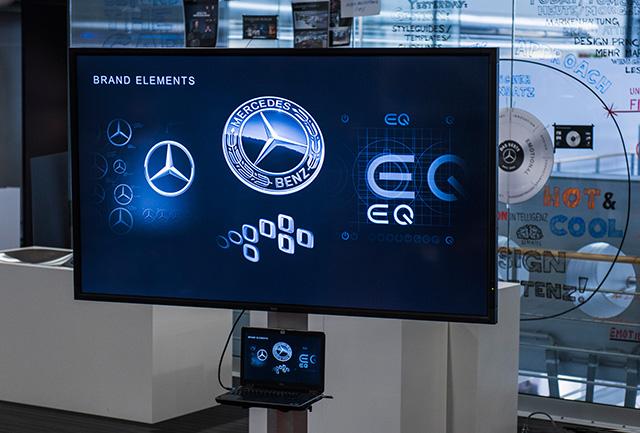 Все, что не касается автомобилей напрямую, разрабатывает студия корпоративного дизайна, Corporate Design. Больше века сама трехлучевая звезда постоянно менялась и совсем недавно получила черный глянцевый фон. Фирменный классический шрифт Mercedes-Benz тоже все время эволюционирует, хотя мы этого не замечаем. Оформление дилеских салонов и выставочных стендов, постановка задач фотографам, ливреи формульных болидов Mercedes-AMG… Словом, всё, в чем человек соприкасается с брендом Mercedes-Benz — это Corporate Design.